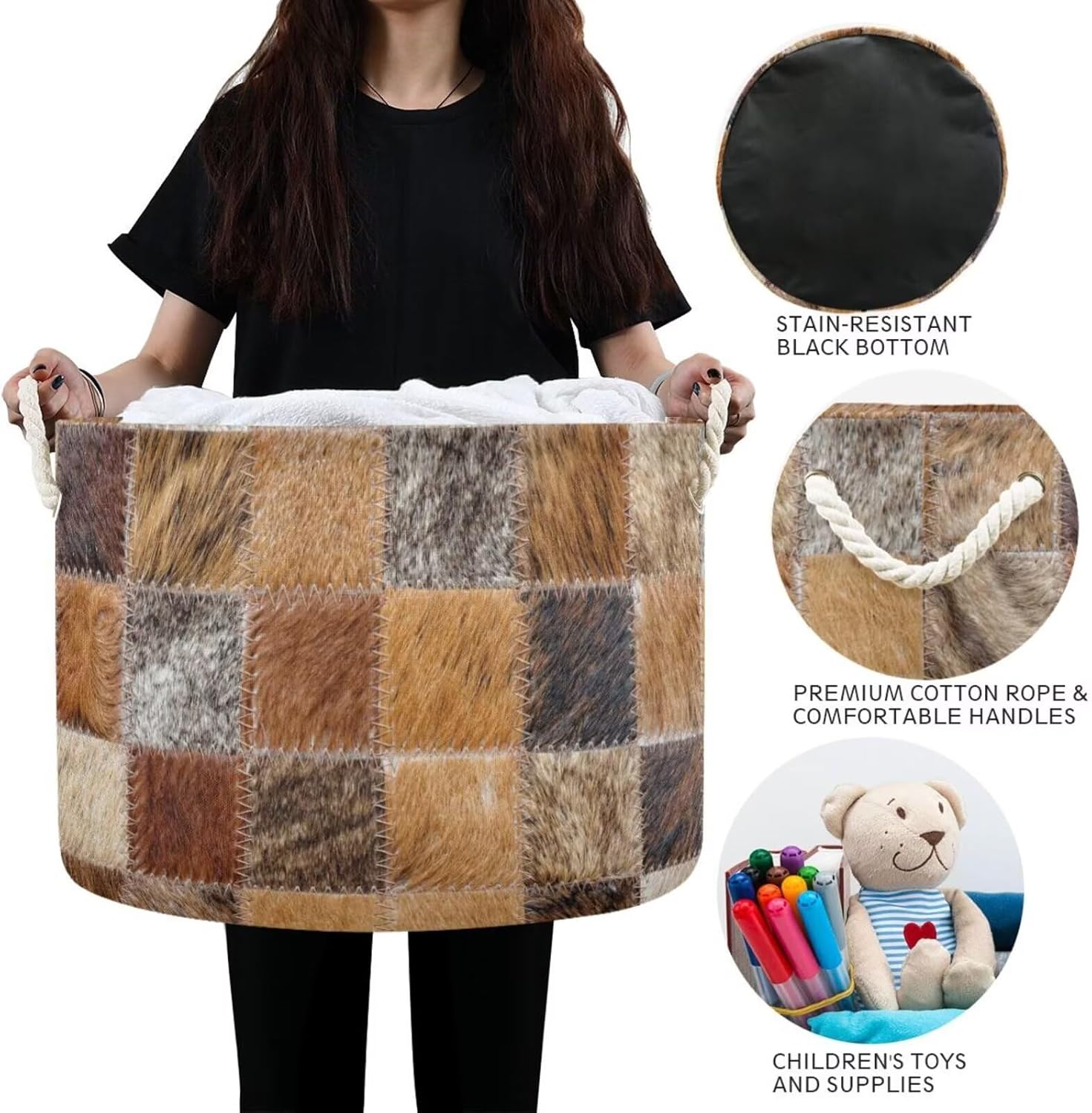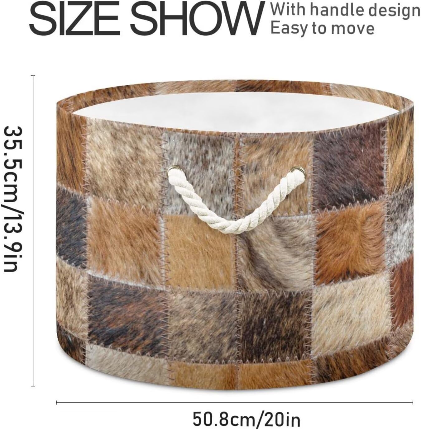 Cow Fur Print Large round storage basket with design sense can be used as a home decoration or organization tools. Sleek and minimalist design effortlessly blends with any interior decor. Cow Fur Print Storage basket is suitable for playroom, laundry room, balcony, toilet, corridor, cloakroom, kitchen, bedroom, bathroom, living room, closet, car, etc
